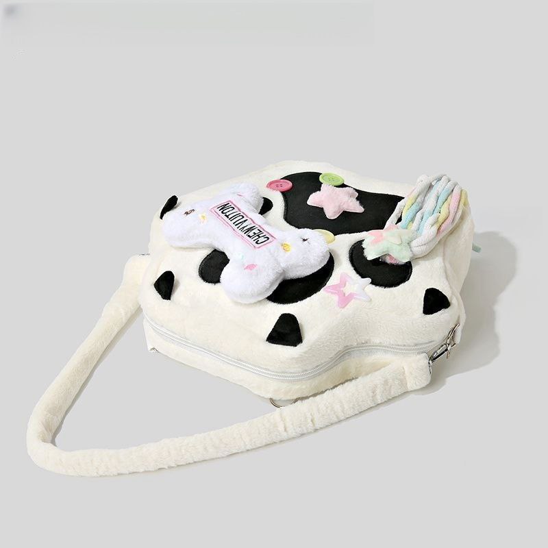 Designed for the playful at heart, this paw-shaped plush backpack blends adorable charm with everyday practicality. The soft furry texture, colorful button accents, and bone plush detail make it a total statement piece for any outfit.