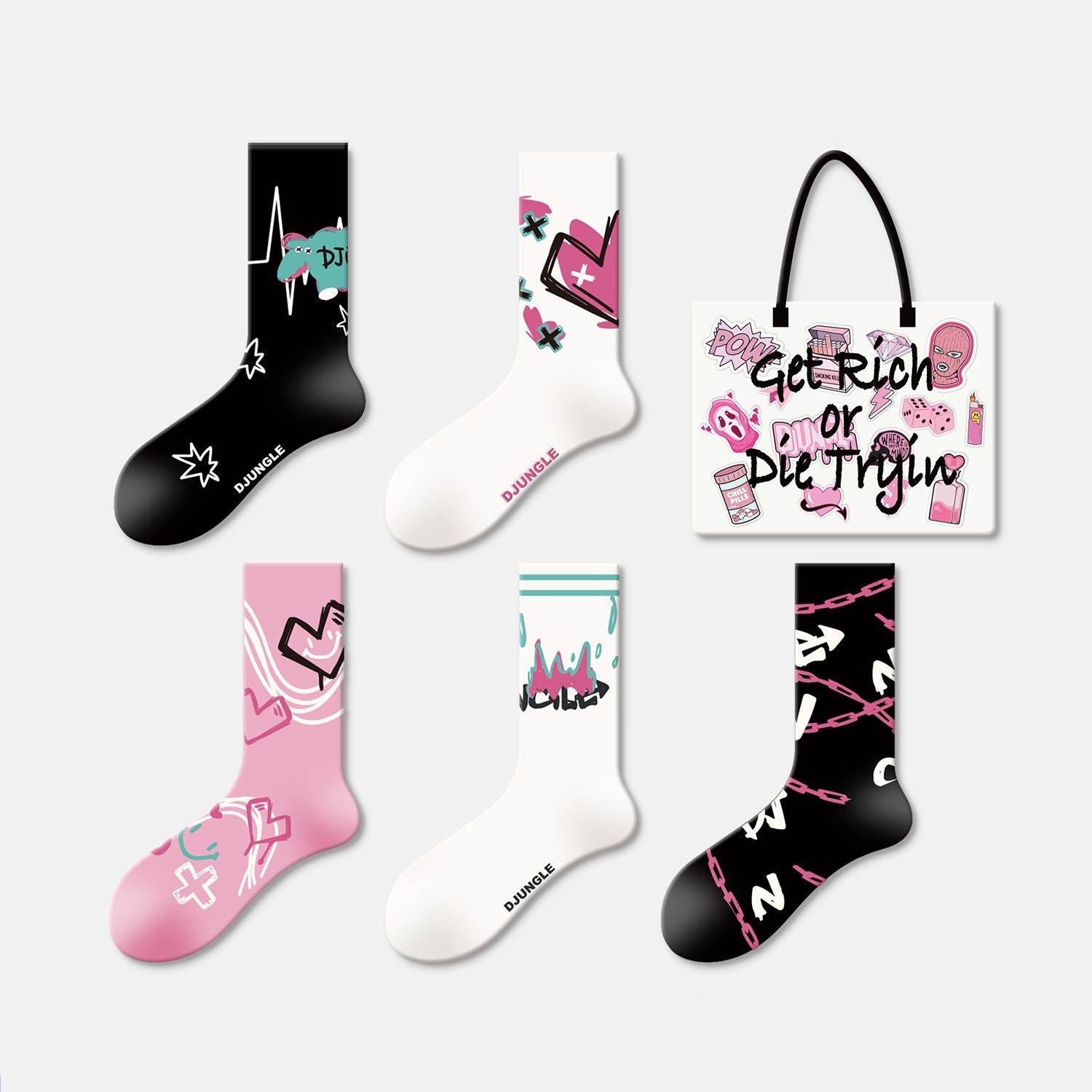 Introducing the Jupiter Love Socks Series – a wild fusion of street pop-art, rebellious energy, and dopamine-charged design. Each pair comes with attitude, packed in an exclusive “Get Rich or Die Tryin” graphic tote bag for the full drip.