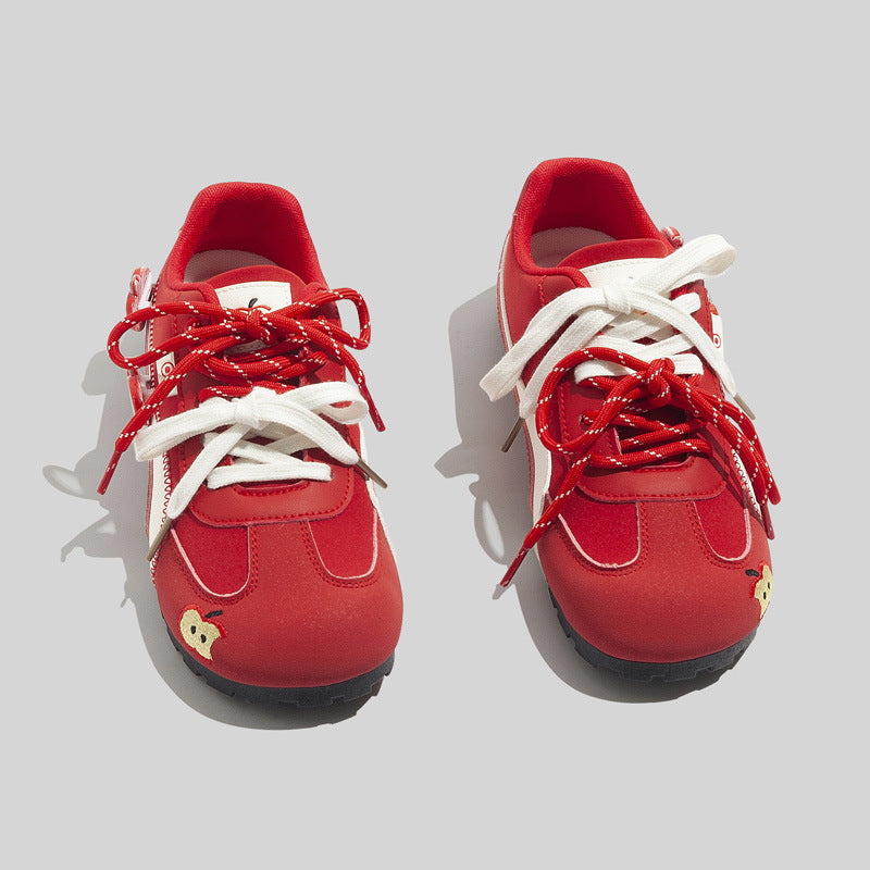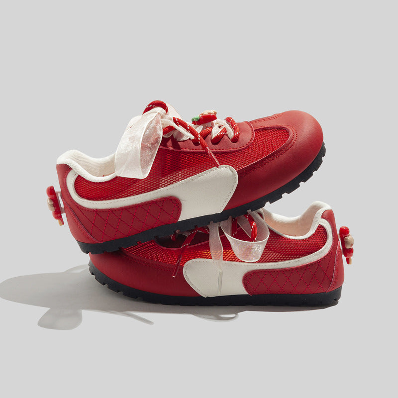 Slide into the spotlight with the Epal Race Runner — a playful blend of sporty energy and irresistibly cute charm. Dressed in vibrant red with crisp white accents, these sneakers bring the heat with every step. But it's the details that steal the show.