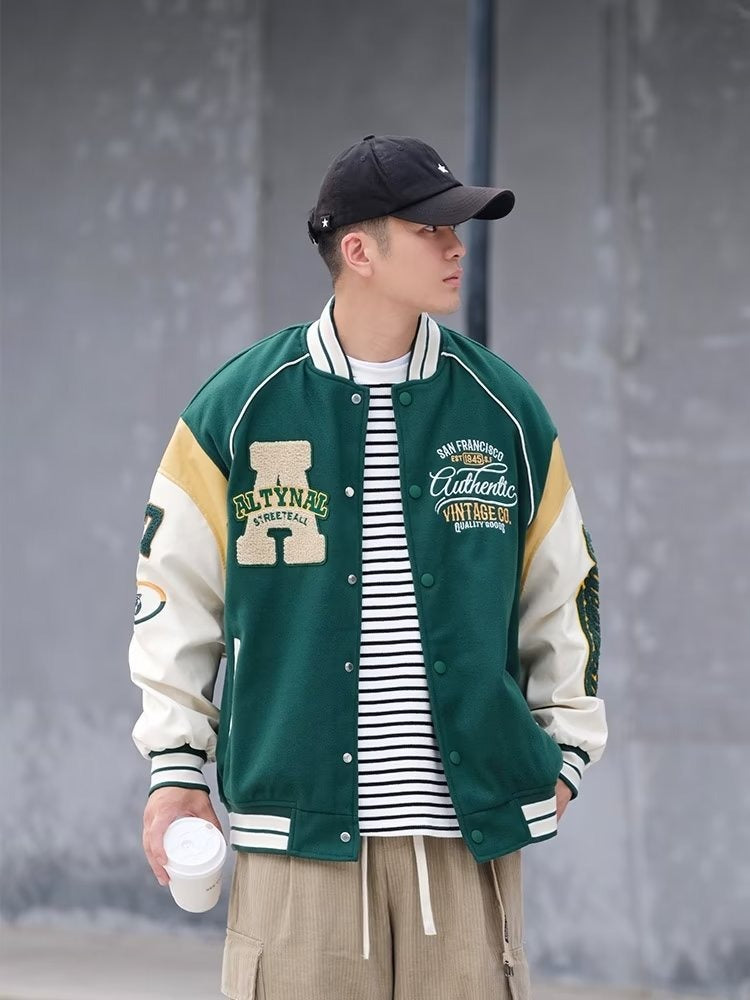Introducing our San Francisco-themed varsity jacket, complete with the iconic Golden Gate Bridge and the number "17" emblazoned on the back. Made with high-quality wool and leather materials, this jacket is both stylish and durable, perfect for keeping you warm during chilly San Francisco nights. The jacket features a classic design with ribbed cuffs and collar, and snap buttons for easy closure.