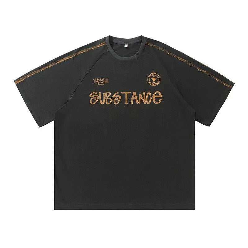 Step back in time with bold attitude — the Retro Substance Statement 1988 Tee blends vintage charm with modern streetwear flair. Featuring standout gold-toned typography, “SUBSTANCE” front and center, and a retro crest badge to the chest, this tee doesn’t whisper style — it declares it.
