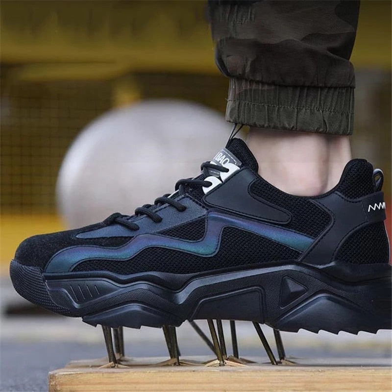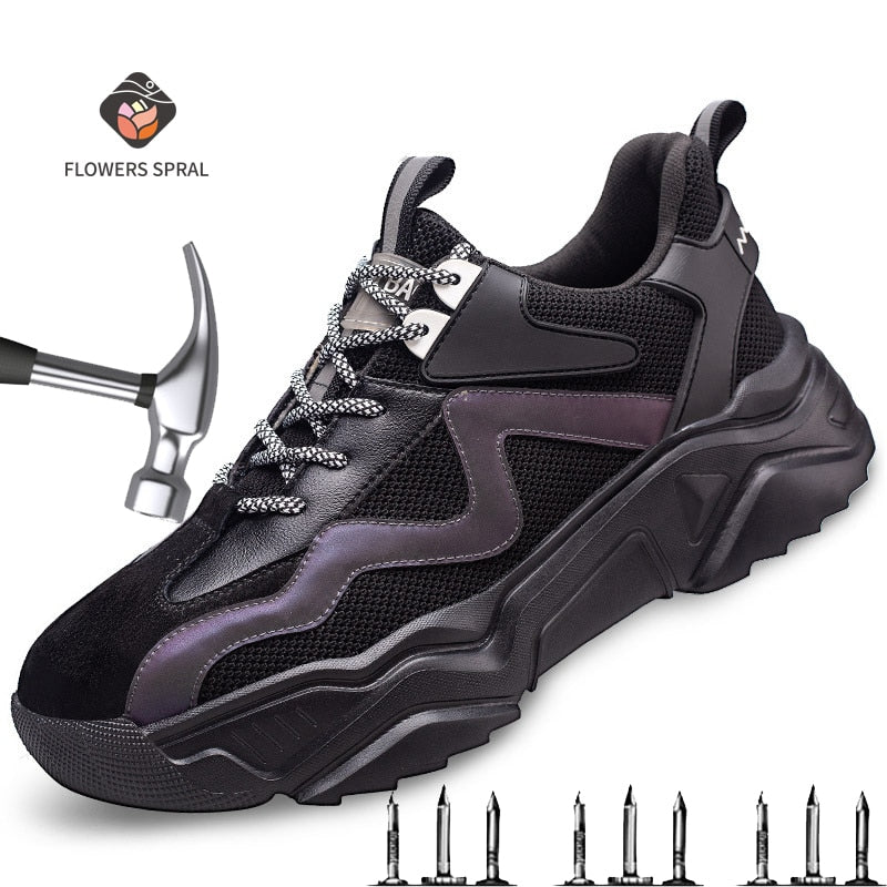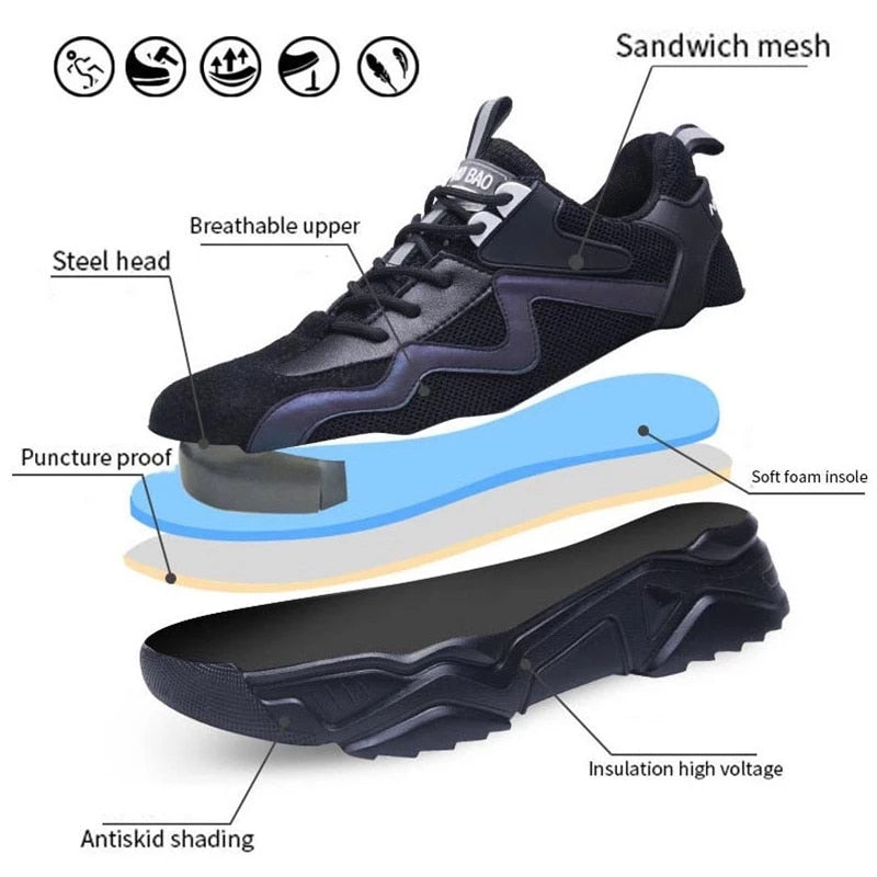 The safety shoes are equipped with a breathable mesh upper, offering super ventilation experience to keep your feet dry and cool all the day.