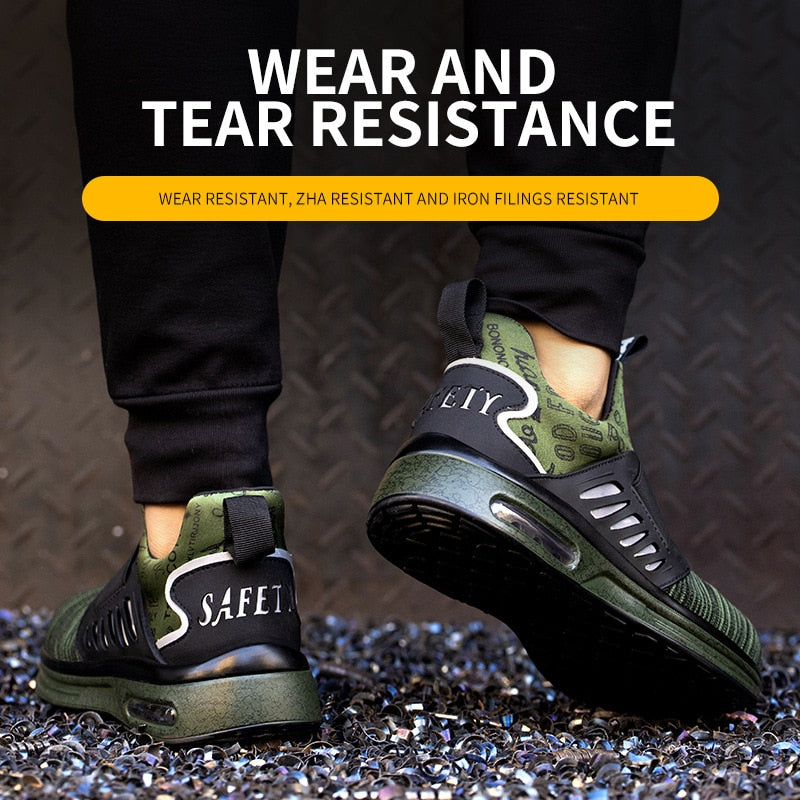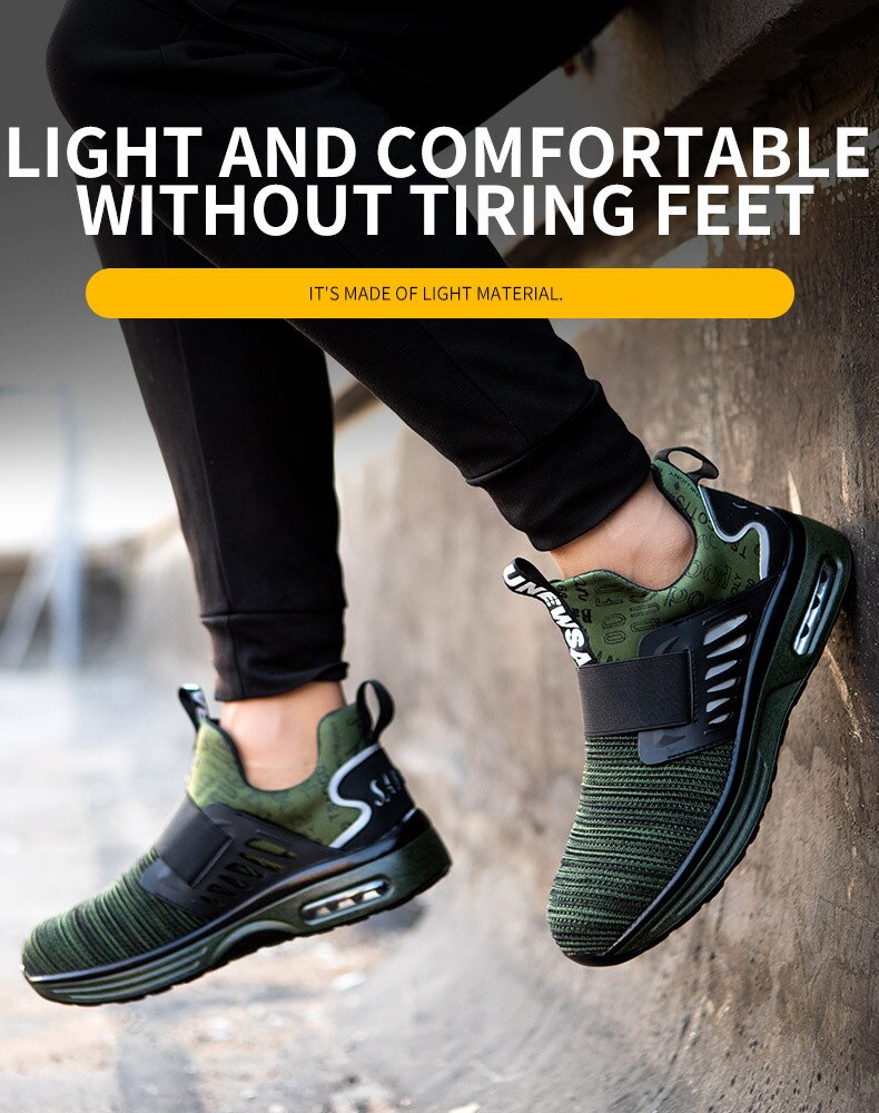 The Leisure fashionable safety shoes for men women. It is suitable for Multiple job/Work. The outsole is PU and Air cushion, anti-skid. design makes the shoes soft, good skid resistance, strong grip, wear resistant.