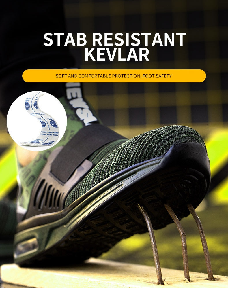 The safety shoes built-in plastic cap toe. The mid sole made of stab-resistant Kevlar, which can resist strong hammer, avoid sharp objects piercing and collision, and protect the feet.