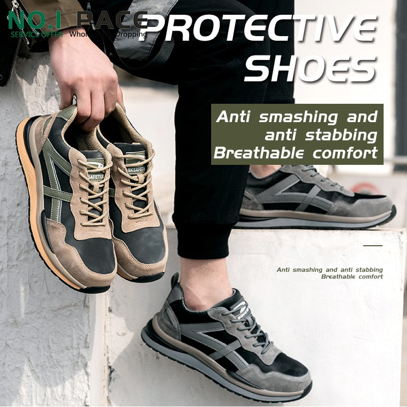 The safety shoes are equipped with a breathable mesh upper, offering super ventilation experience to keep your feet dry and cool all the day.