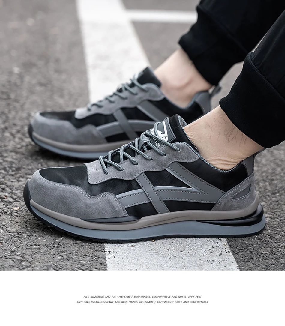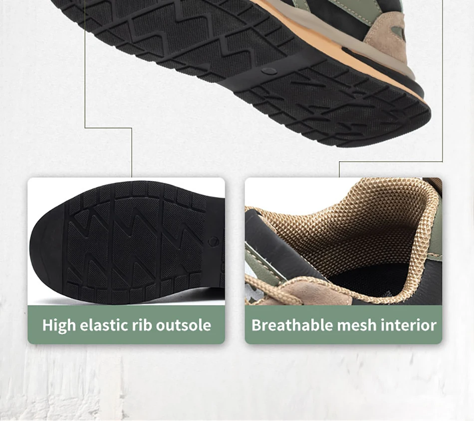 The steel toe cap with buffer can effectively protect your feet from accidental rolling or falling objects.